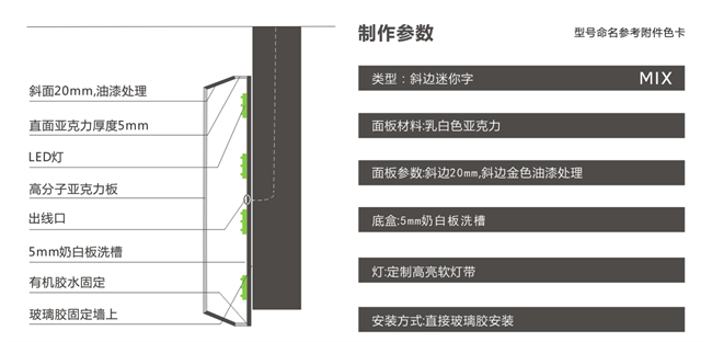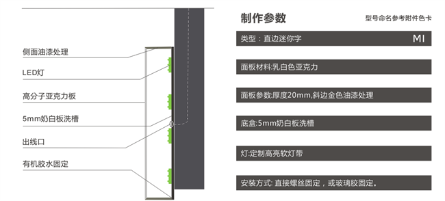 迷你发光字底盒通用5mm奶白板洗槽,侧边有一定的发光面,灯源装置于低槽内。