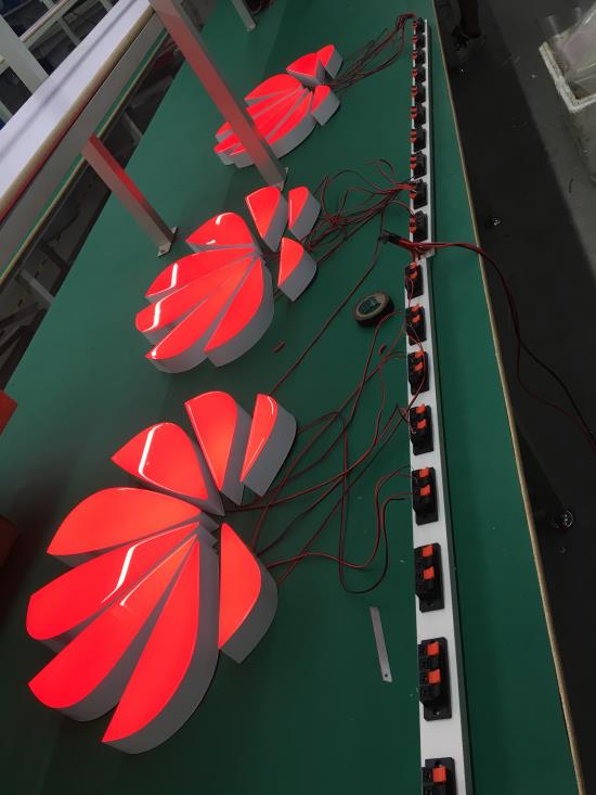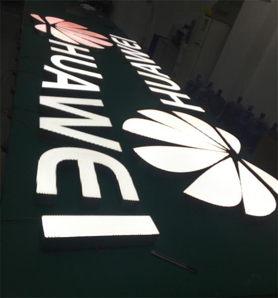 华为品牌连锁发光字它是属于不锈钢树脂发光字,采用的工艺是面贴3M膜,下面可以给大家看看字工场给华为品牌连锁发光字制作的过程: