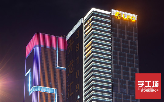 大型发光字在安排装灯时就应该做好设计。字工场想和你说的是如需在大楼外墙装一套字电源需布在楼顶,因线路远有压降应考虑到远的字: