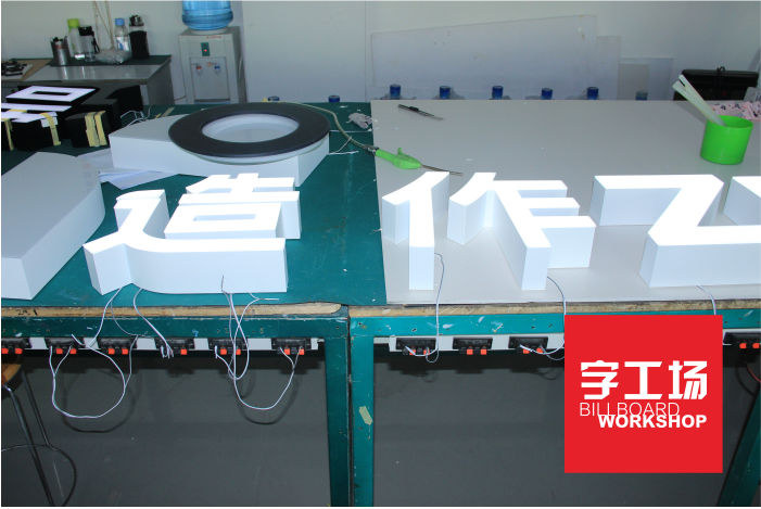 制作工艺:拉丝不锈钢板精密开槽成型\焊接\烤漆处理、亚克力板电脑切割、PMMA(液态)注塑、高密PVC板电脑切割、光源排布\均光\老化试验