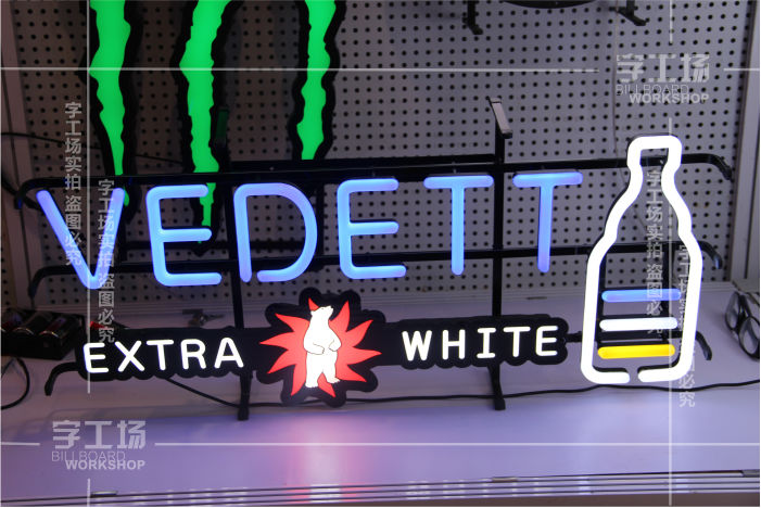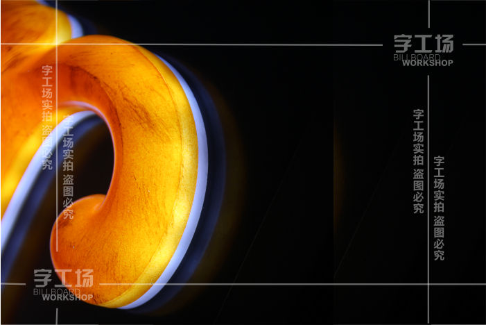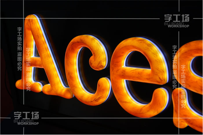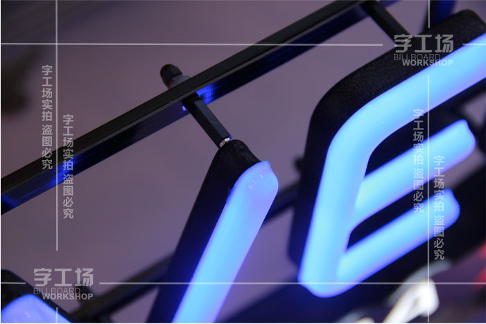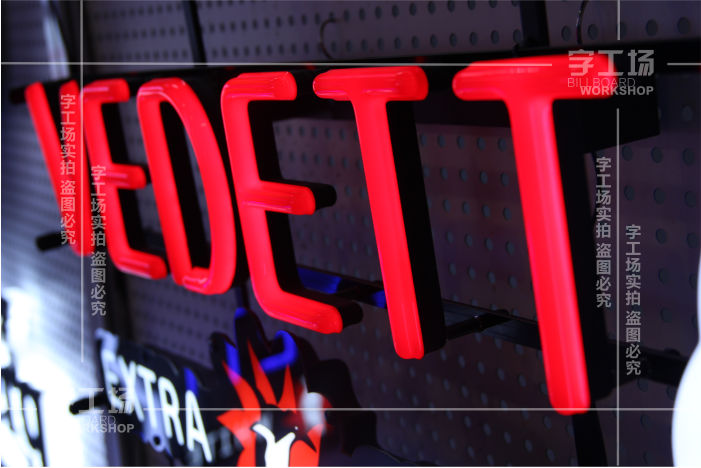 鼓面发光字层次明显,无论是表面的弧形还是背面发光效果,都立体感十足。
