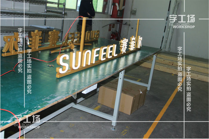 1、目测LED发光字及铝条水平,如果LED发光字一边高一边低,低的那边底要用箔纸垫高,根据情况垫好;