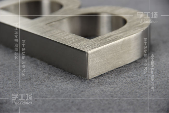 不锈钢发光字表面处理主要包括拉丝、手工抛光、机器抛光、串光、震动研磨等。金属拉丝工艺是指使用拉丝轮、拉丝砂带、尼龙环带等对金属表面进行来回摩擦处理,使工件表面光洁度提高的一种方法。