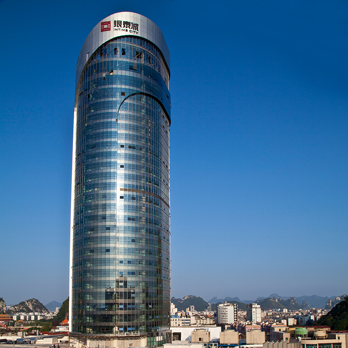 商场建筑标识的规划要表现出色彩分配的美感,在规划时还应结合实际的客观布景,在不可变要素判定的条件下,尽量与其达到必定的对比效果。