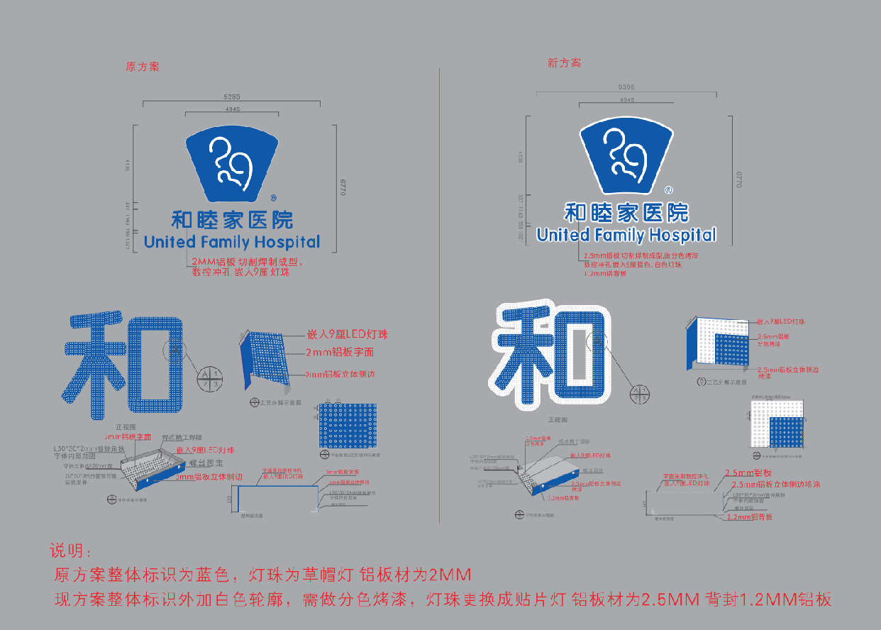 1、LOGO牌部分:1.2mm304不锈钢数控切割、仿型焊接字壳,表面烤氟碳漆,正面3M户外刀刮布,防晒处理,UV喷绘内置蓝景户外专业防水LED光源,白色英文为立体字(套壳字),背架国标50方钢结构;