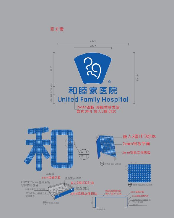 包括零配件结构图、组装结构图、安装示意图等,部分复杂发光字须将其结构分解(绘制结构爆炸图)。施工制作图应该严格按照比例关系绘制,标注文字小于标识内容,部分标识饰面、文字或图案颜色须按建设方要求制作的,需说明其CMYK数值或色样编号。