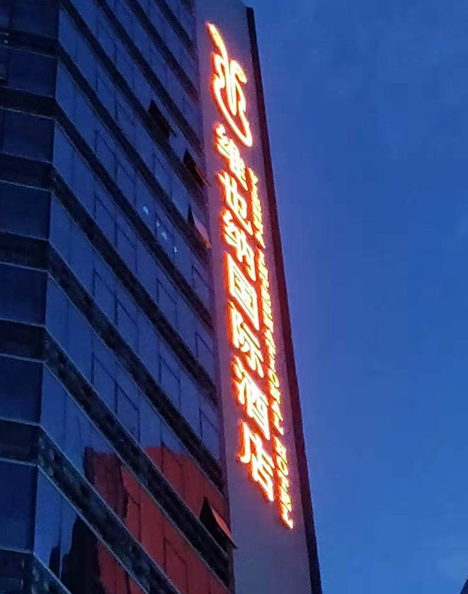 合理的选用光源对楼体发光字工程整体的结构是有影响的,不同的光源,安装方式不同,骨架结构也有差异。图纸中布置光源及电气件要考虑售后的维修方便,特别是大尺寸的楼体发光字工程,工人在维修施工过程中,存在很多的危险,要充分考虑这些危险带来的严重后果。所以在考虑灯光效果时,应尽量采用便于维修的可移动式灯架,为今后的维修提供方便。