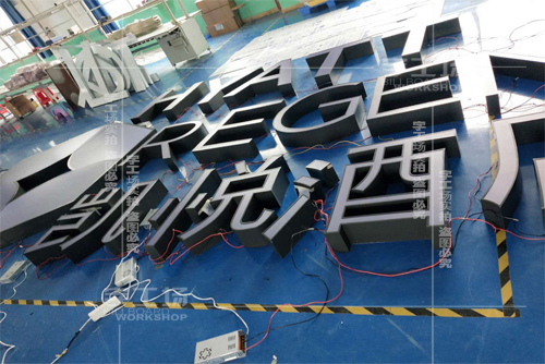 广告字贴膜工艺就是在基材上贴上各种各样的装饰膜而达到表示效果的制作方法。贴膜时,可选用的膜种类多样,有透光膜、不透光膜、木纹膜、金属膜、透明膜、磨砂膜、反光膜等等,颜色丰富,使用灵活方便。