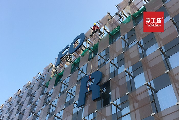 2、现场焊接,固定。直至广告牌的钢结构雏型型成。