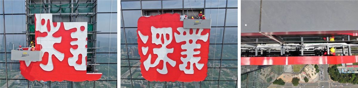 面材的平面具有充实感,将面材围合成封闭的中空形态,可以构建体块形态,又比块材省料,且大大减轻了重量,因此在发光字标识设计中也是运用得比较广泛。从视觉感知而言,面材的截面往往能带来线材般的轻快和流畅之感,而其平面视角又能带来块材般充实、沉稳的美感特征。面材之间的特性差异较大,因而在设计时,需要根据不同的面材特征进行合理选择。有些具有较好的弹性和韧性,如金属面材往往具有较好的延展性,可加工成各种创意造型形态。有些材料的弹性和韧性差,如玻璃板、木板、石板等,则可用于简约的几何造型的打造。还有一些韧性和刚性都较差的材料,如织物、皮革等,则可以用于表现柔性美感的设计。另外,面材构造差异也会形成不同的视觉语言,如表面平滑的面材具有延伸感,凹凸的面材则具有体量感,透明的面材具有通透感,呈球面的面材具有张力感,等等。