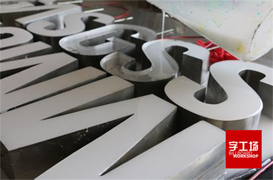 树脂发光字制造工艺:通体树脂发光字标识则是边、面、底都是树脂,由液态树脂一体浇筑成型,底部装LED光源。