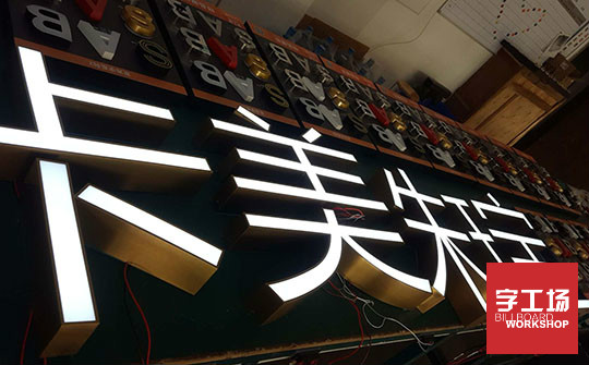 背光字运用LED背光技术,使用进口亚克力和金属材料,采用磨砂、电镀、喷涂等精细工艺,字体色彩艳丽、光线柔和清晰、穿透力强,即便在数百米距离外也能清楚识别。