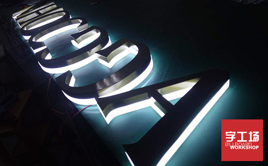 对于亚克力发光字而言,厚度用围边焊接而成,或者实心的字体,统称为金属立体字。深层的加工就是篓空装LED灯,构成金属发光字招牌。具有立体效果。第二大类:压克力类立体字:包括水晶字、有机围边字、吸塑字等。一般水晶字是实心的,也有做成水晶发光字。有机围边字内打灯则成为通体发光字,吸塑字一般与金属字相结合,构成灯箱字。也就是人们常说的吸塑LED发光字招牌,一般内置都是LED防水光源,适合于户外广告招牌。第三大类:树脂立体字招牌。这些字因为是树脂浇灌而成的,具有很好的防水性能。装上LED灯,冲孔发光字发光均匀通透。重量比较轻。第四大类:也有人用泡沫字、PVC字、木字等材料雕刻而成的字。不过,泡沫字一般是比较低档,适合于做成标语字。