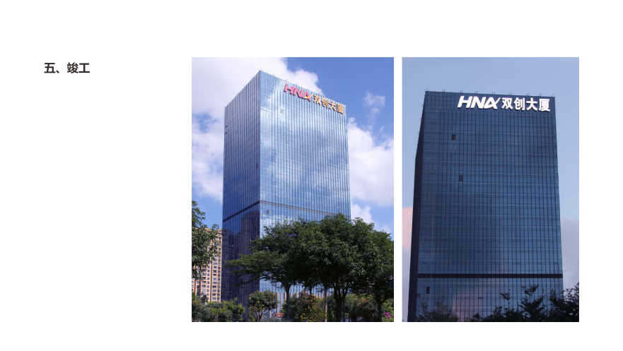 海南双创大厦楼宇玻璃幕墙发光字工程